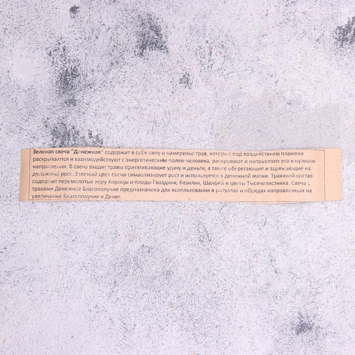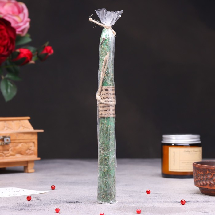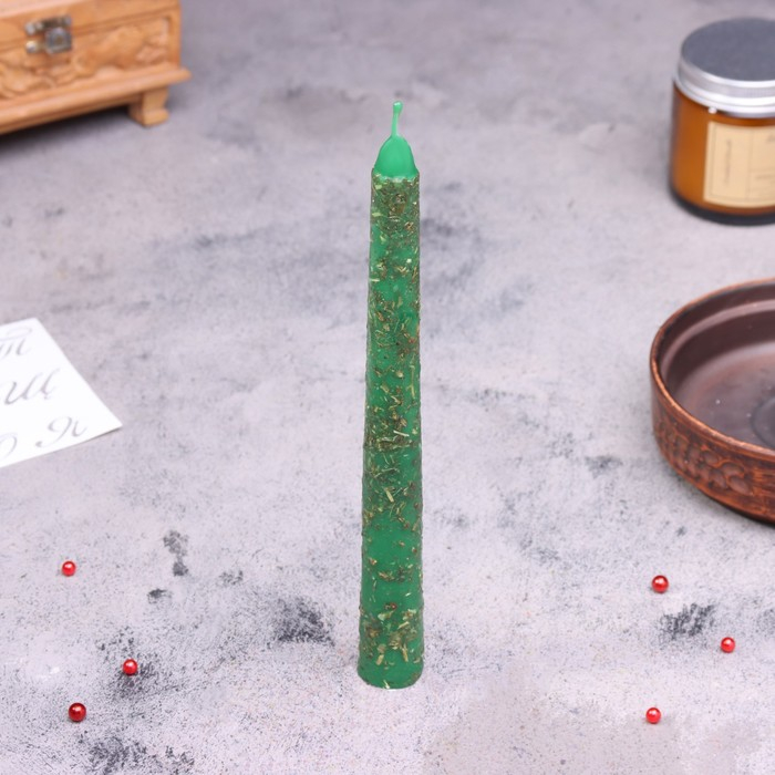Свеча магическая "Денежная" с травой, зелёная, 20см
