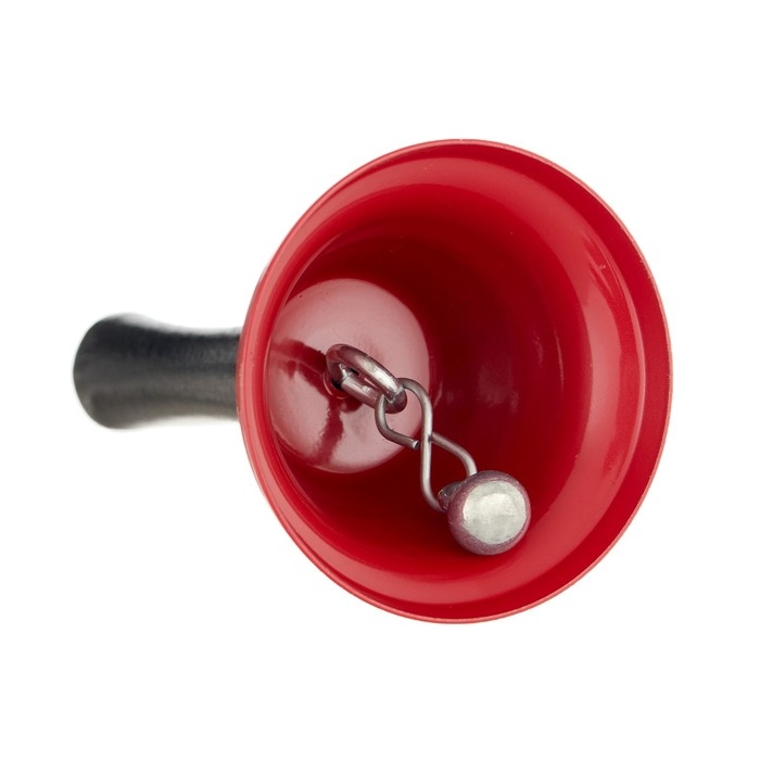 Яркий и стильный, изготовленный из тонкого металла он обеспечивает чистый и звонкий звук, а ручка помогает удерживать изделие. Колокольчик имеет красный цвет, который привлекает внимание, компактный и удобный в использовании.