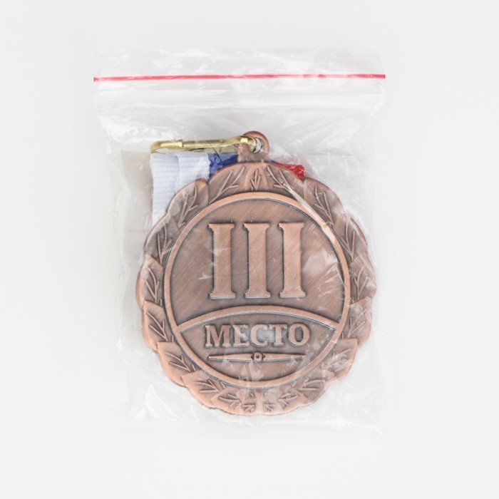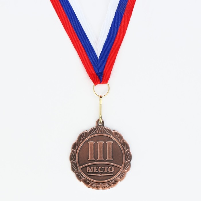 Медаль призовая 014, d= 7 см. 3 место, триколор. Цвет бронза. С лентой