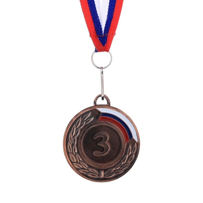 Медаль призовая 014, d= 7 см. 3 место, триколор. Цвет бронза. С лентой