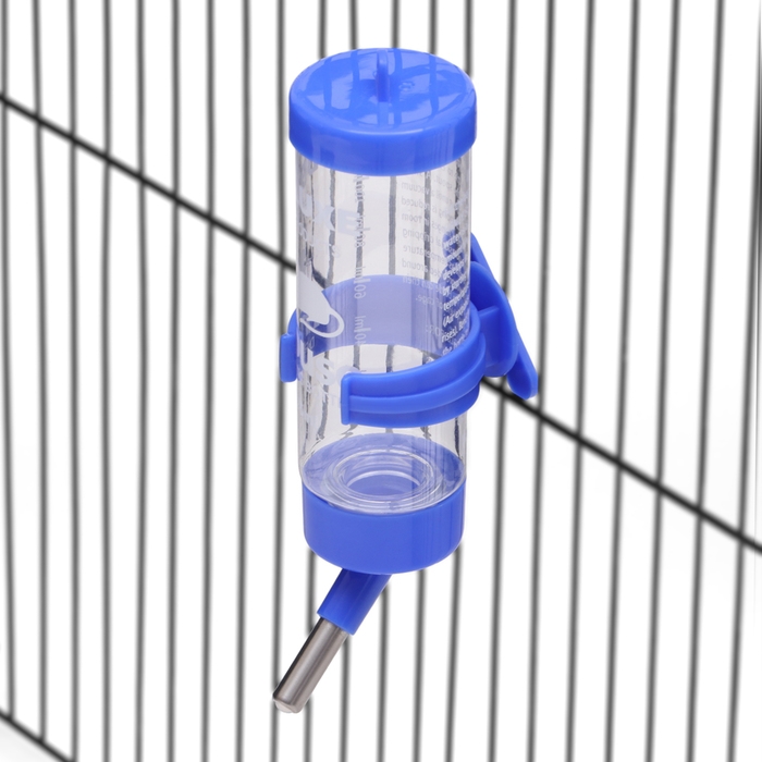 - Удобство: поилка легко крепится между прутьями клетки, а прозрачные стенки позволяют контролировать уровень воды.
