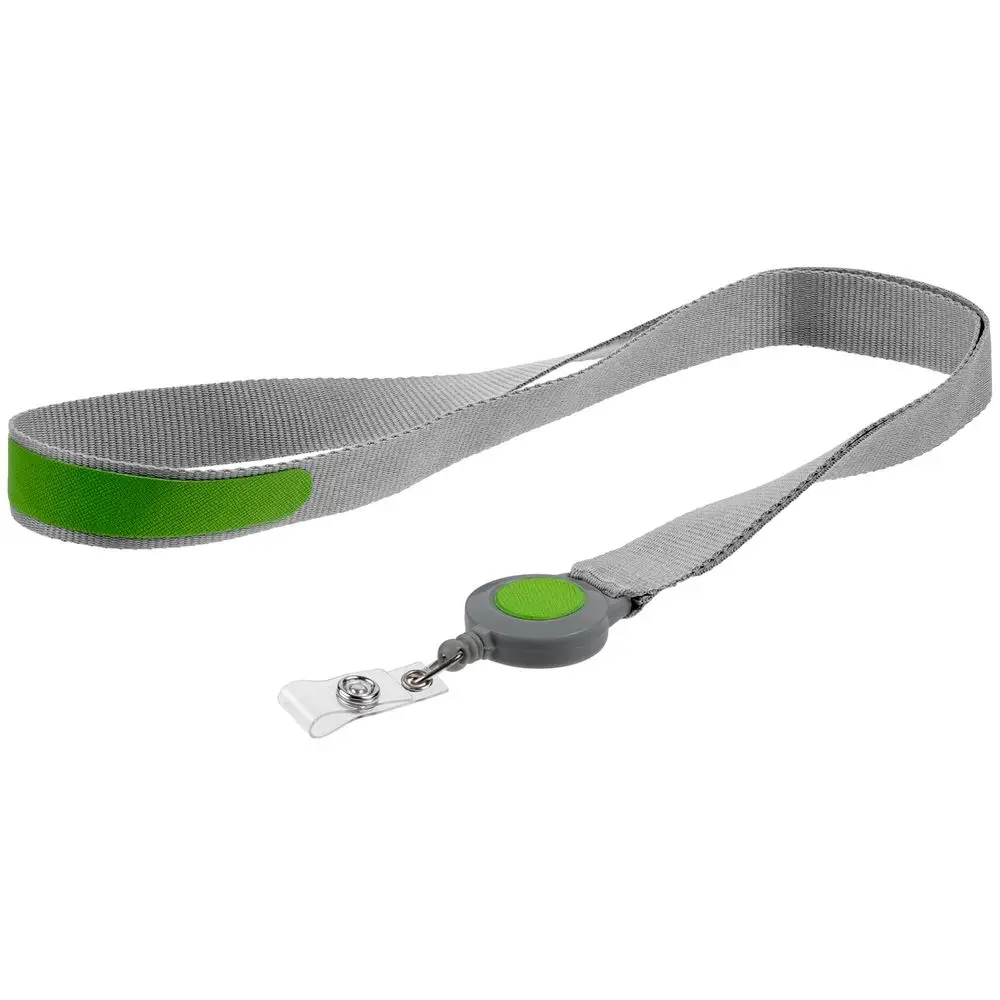 Лента для бейджа с ретрактором Devon, серая с зеленым