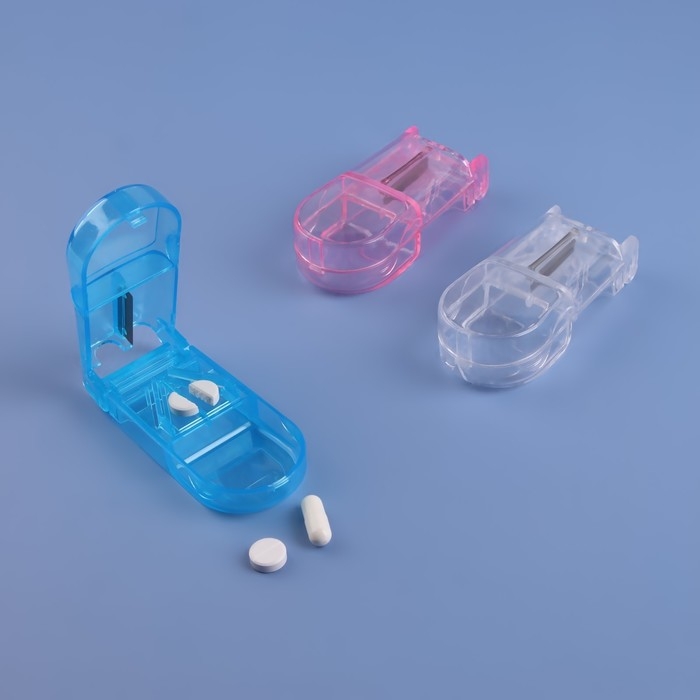 Таблетница с таблеторезкой, 8,5 × 4 × 2,5 см, 1 секция, цвет МИКС