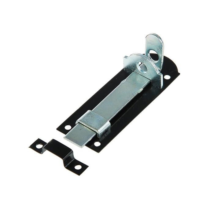 Задвижка дверная, 100 мм по основанию, под навесной замок, оцинкованная