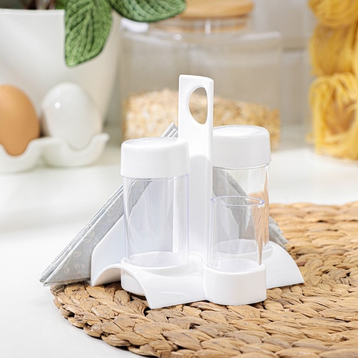 Набор для специй пластиковый «Рондо. Презент», 3 шт, на подставке с салфетницей, цвет белый