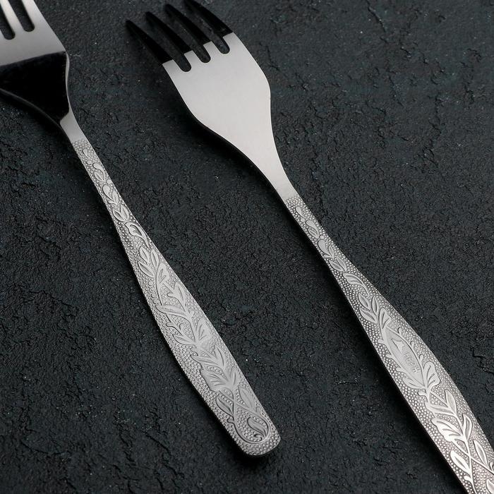 Вилка столовая «Росинка», длина 20 см, толщина 1,8 мм, цвет серебряный