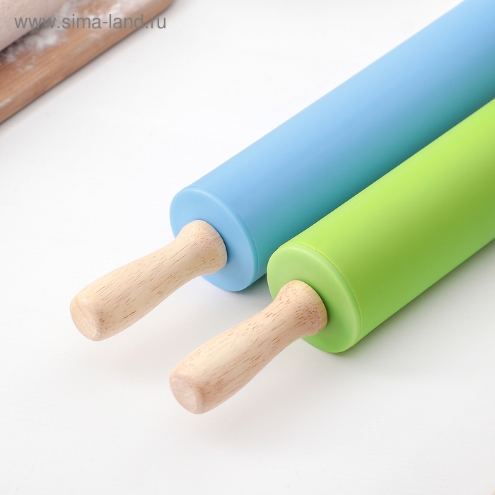 Скалка «Прованс», 31 х 4 см, силикон, дерево, цвет бирюзовый