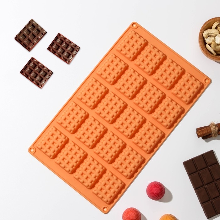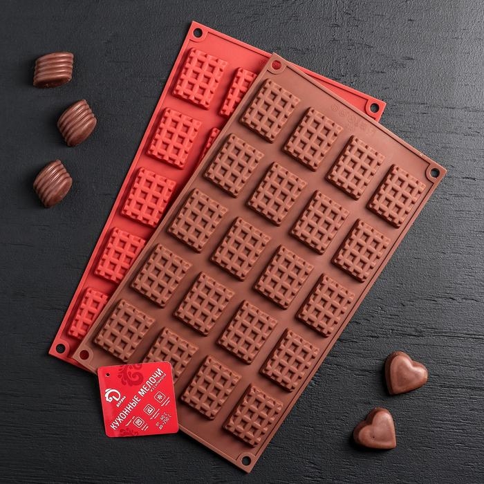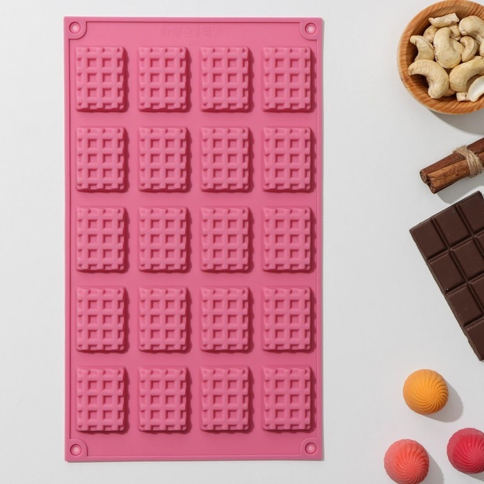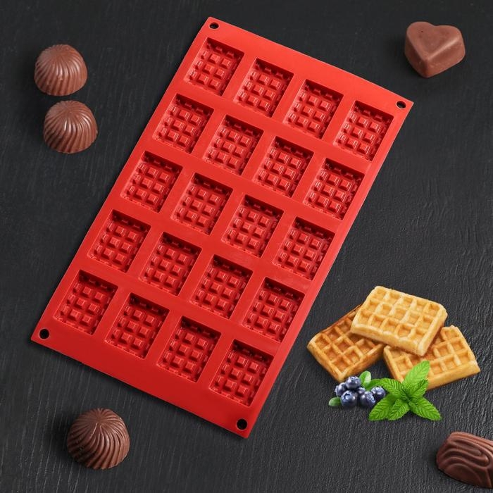 Форма для шоколада Доляна «Вафли», силикон, 17×30×1 см, 20 ячеек (4,3×3,3 см), цвет МИКС