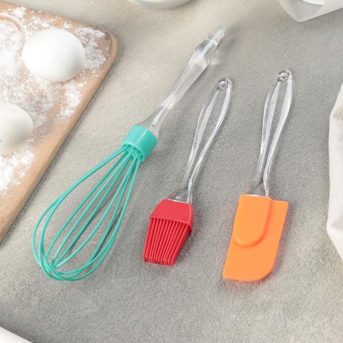 Набор для выпечки Доляна «Лёд», 3 предмета: лопатка 23,5 см, кисть 20,5 см, венчик 25 см, цвет МИКС