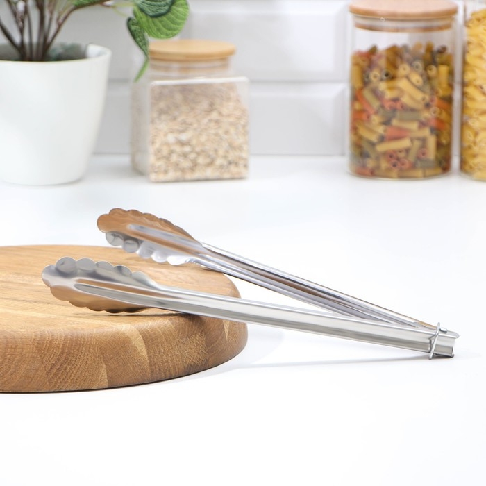 Щипцы кухонные с перфорацией Доляна, 201 сталь, 23 см, цвет серебристый