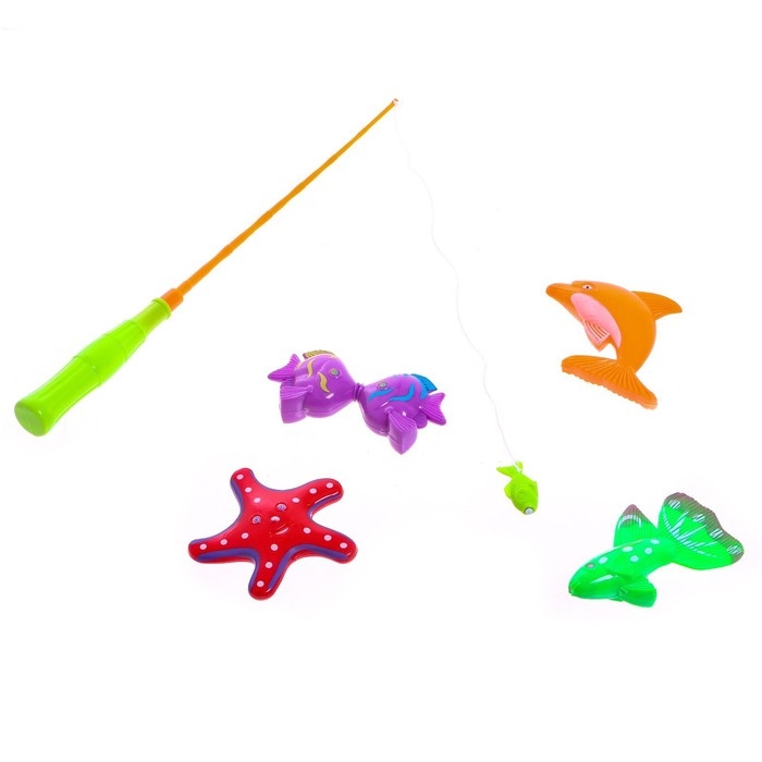 - Сделайте водные процедуры интереснее. Наберите в ванную воды, опустите туда морских обитателей, и с помощью удочки вытаскивайте их на «сушу».