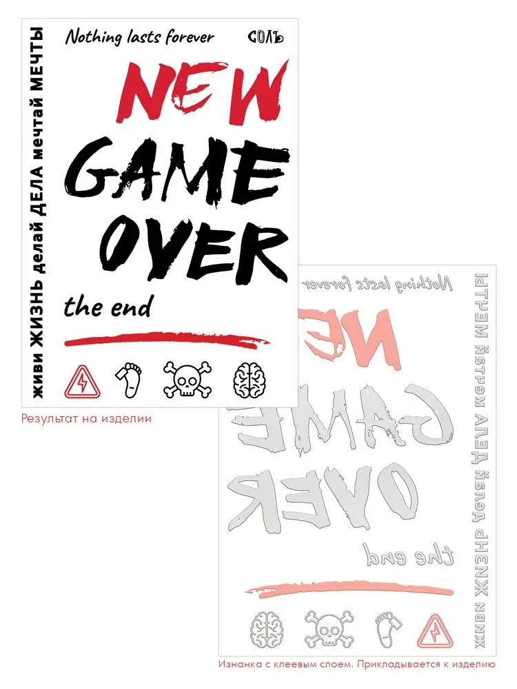 Слово — не воробей, вылетит — не поймаешь. Зато его можно припарить утюгом. Тогда оно станет стильным дополнением образа. Татуировки для одежды как новый способ проявить себя.В комплект входят две маски в индивидуальном пакете, два листа с термонаклейками и инструкция по использованию термонаклеек.