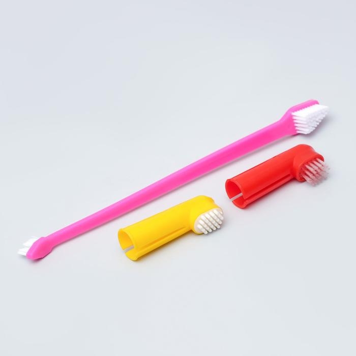 Набор зубная щётка двухсторонняя и 2 щётки-напальчника, микс цветов