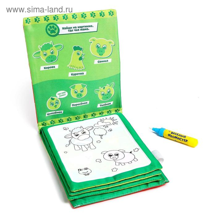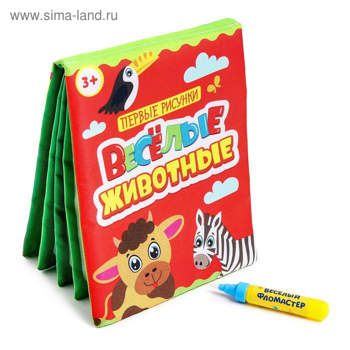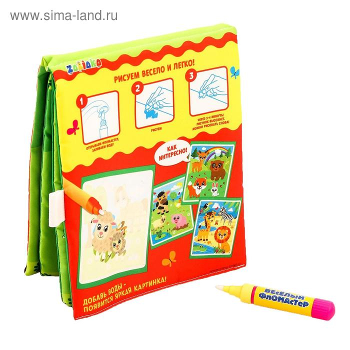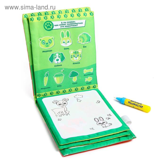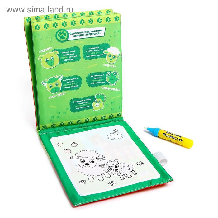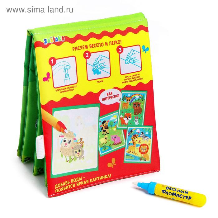 Книжка для рисования водой многоразовая «Весёлые животные» с водным маркером