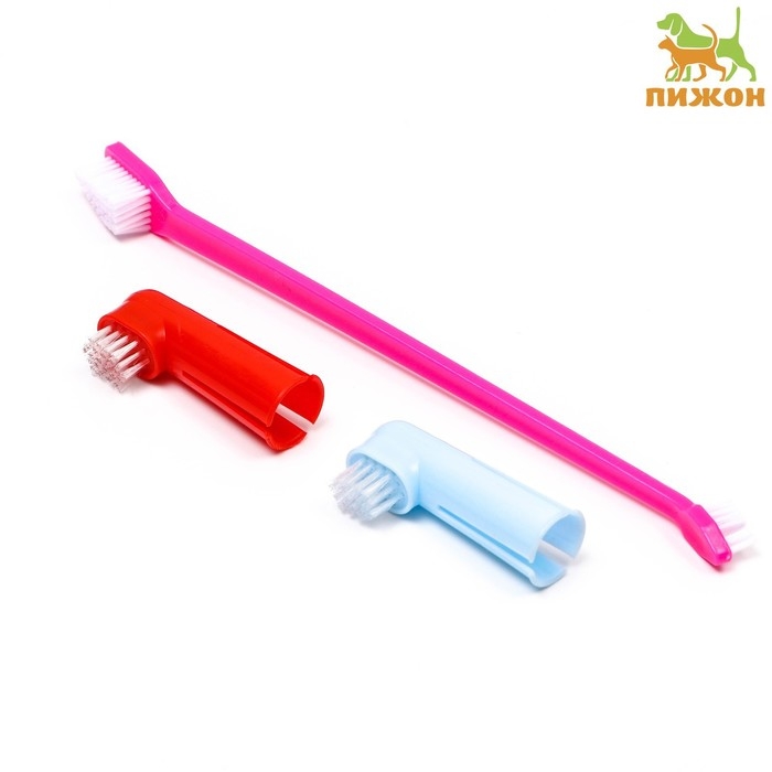 Набор зубная щётка двухсторонняя и 2 щётки-напальчника, микс цветов