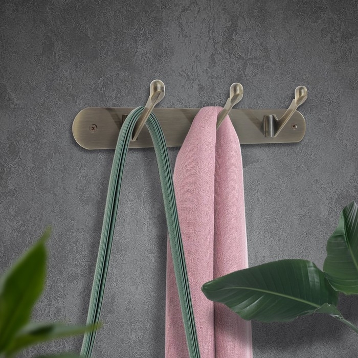 Вешалка ТУНДРА TVT001, металлическая, трёхрожковая, цвет бронза