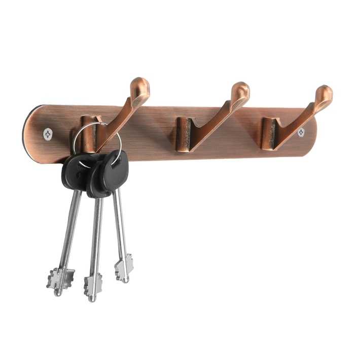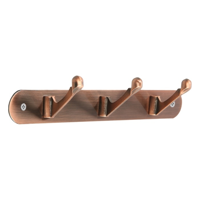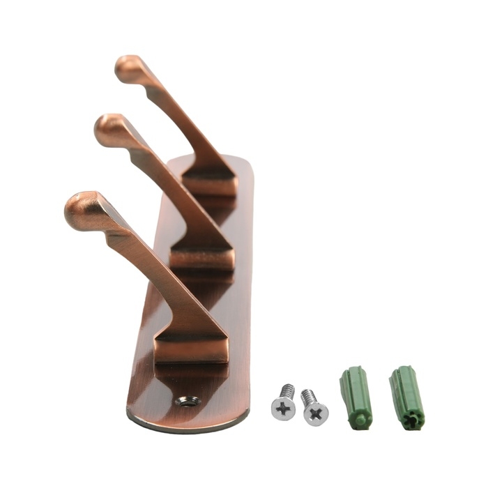 Вешалка ТУНДРА TVT001, металлическая, трёхрожковая, цвет медь