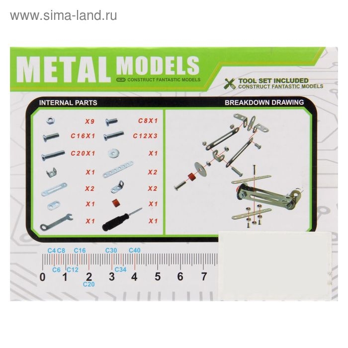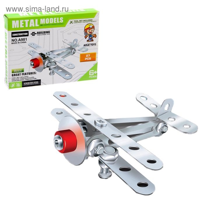С металлическим конструктором мальчишка начнёт освоение авиатехники, а также спроектирует собственные инновационные модели. По подробной инструкции ребёнок соберёт летательный аппарат и отправится покорять воздушное пространство. Для этого необходимо лишь наложить детали друг на друга и скрепить их через отверстия в пластинах винтом и гайкой.