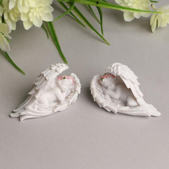 Сувенир полистоун "Ангельские сны" в венке из роз, МИКС, 6,5х3х4 см