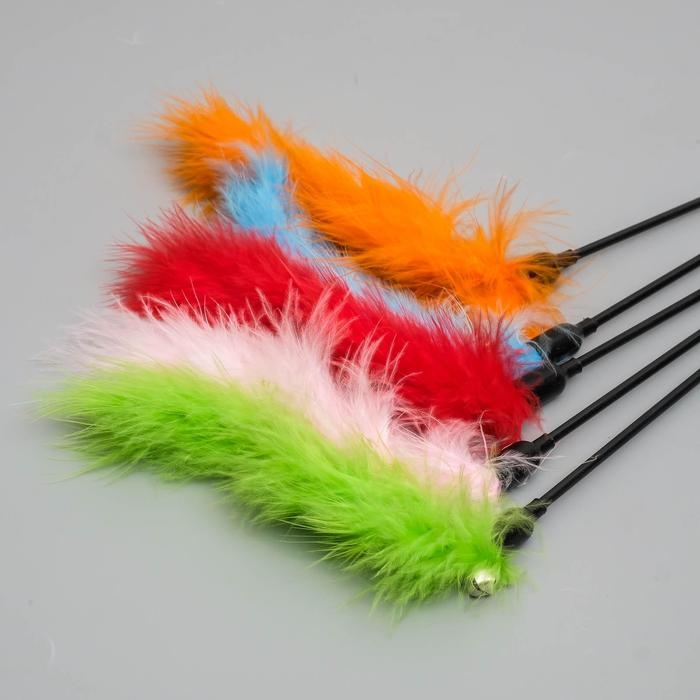 Дразнилка с цветным шариком и перьями, 49 см, палочка микс цветов