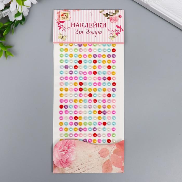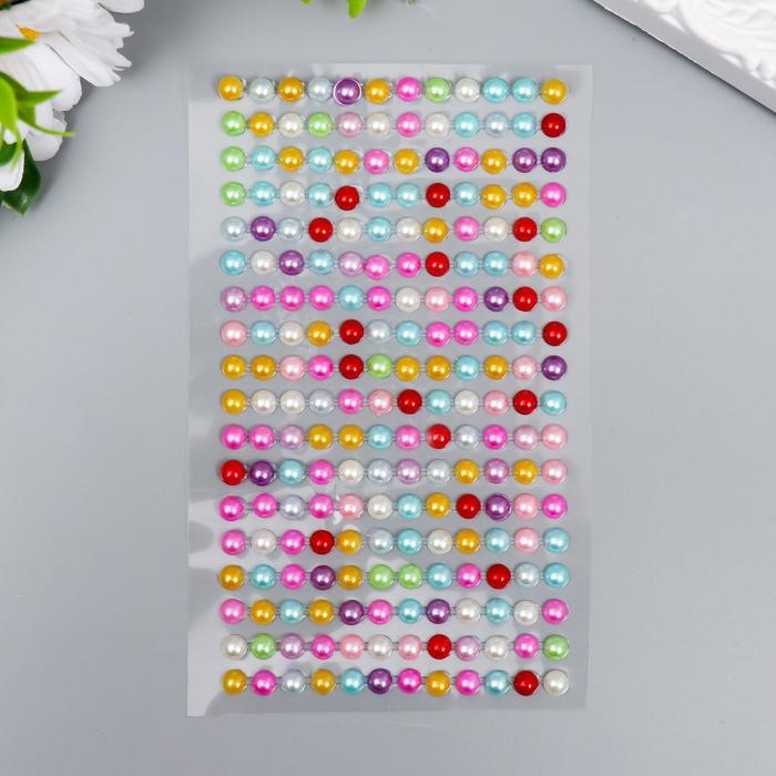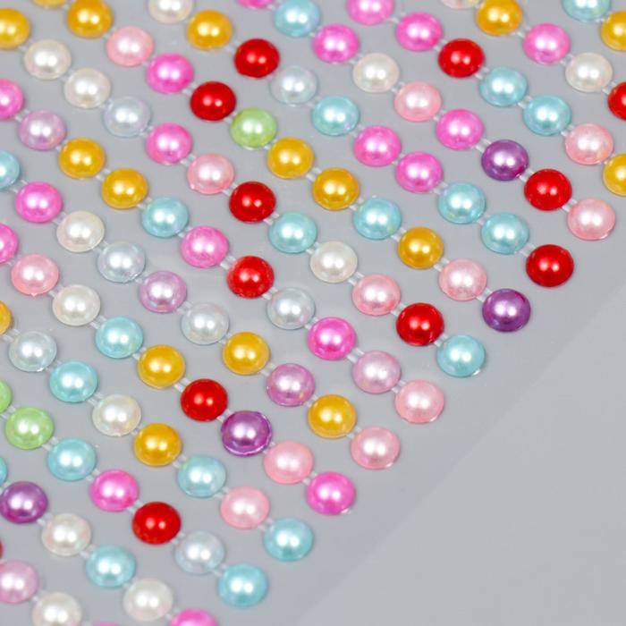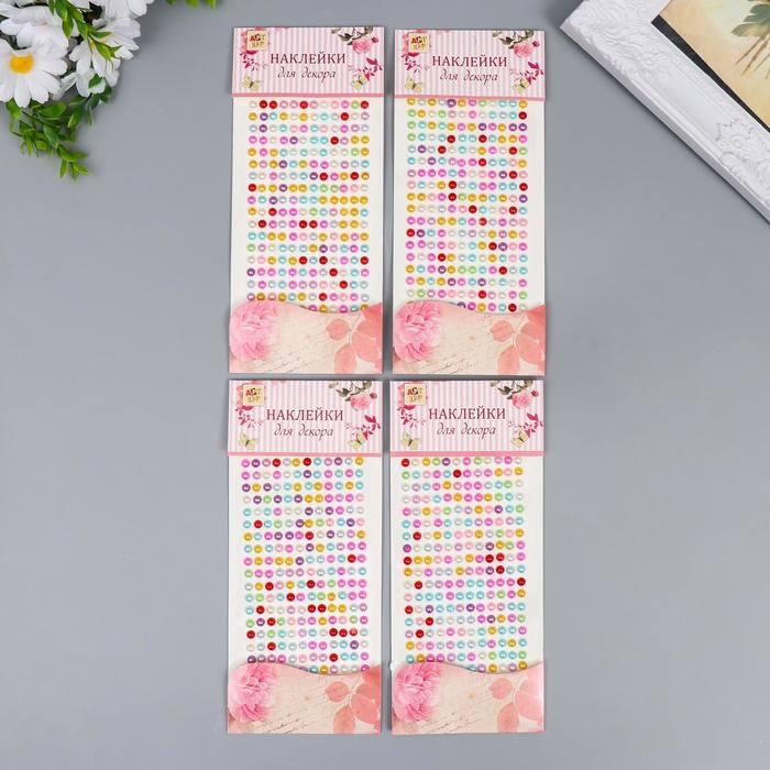 Наклейка пластик "Стразы цветные перламутровые" МИКС d-0,6 см 10х22,5 см