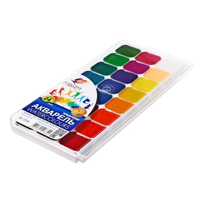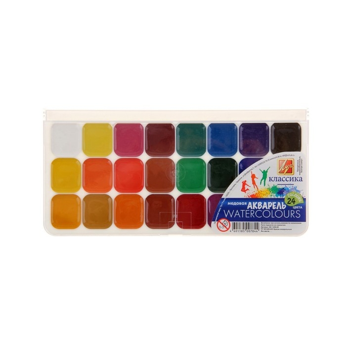 Краски акварельные медовые полусухие изготовлены на основе натуральных природных компонентов и высококачественных пигментов. Акварель предназначена для детского творчества и различных живописных работ.