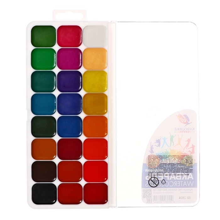 Акварель художественная в кюветах, 24 цвета х 2.5 мл, ЗХК "Санкт-Петербург", пластиковая палитра, 1942017