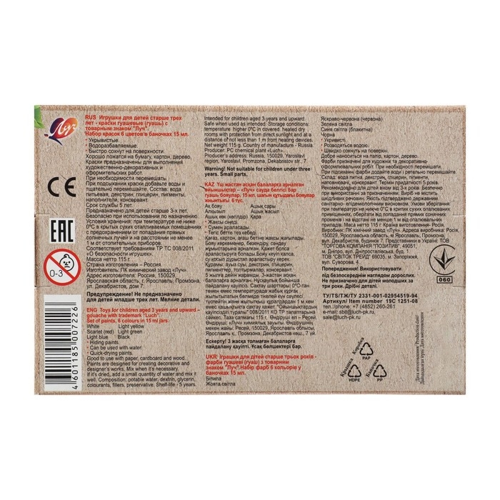 Гуашь 6 цветов х 15 мл ZOO поможет вашему ребёнку создавать красивые яркие картинки, выдумывать невероятные сюжеты и воплощать их в реальность, развивая цветовое восприятие, зрительную память, воображение, мелкую моторику пальцев, ассоциативное, аналитическое и творческое мышление.