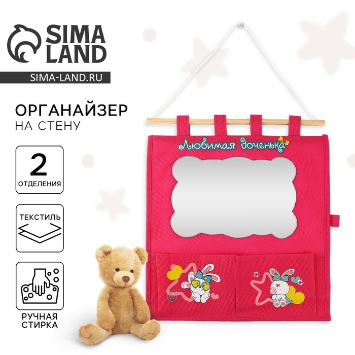 Органайзер для хранения вещей на стену с зеркалом «Любимая доченька», 2 отделения