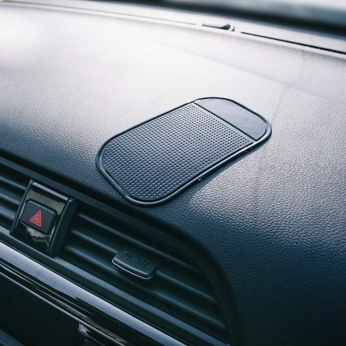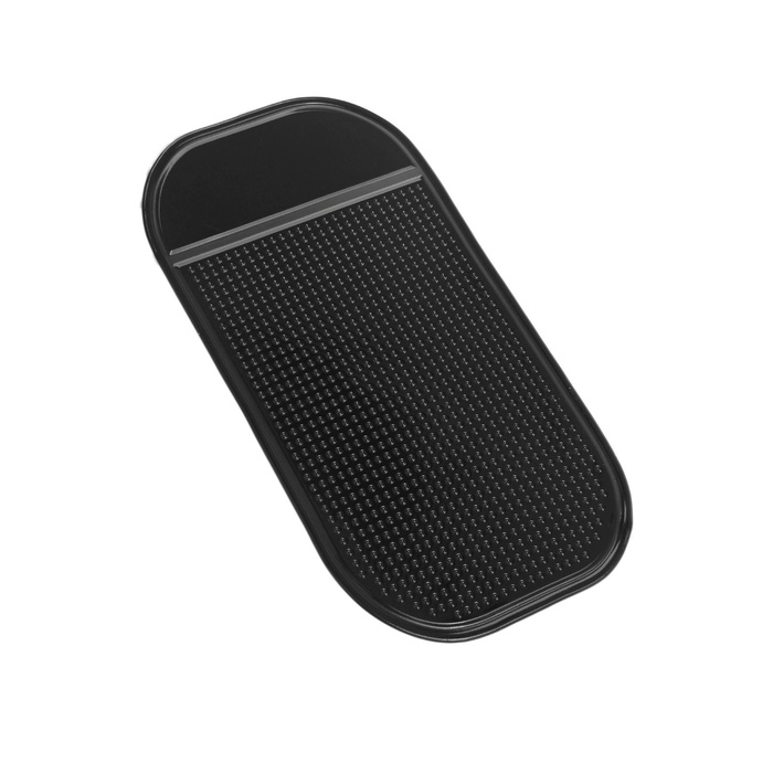 Противоскользящий коврик на приборную панель выполнен из легко моющегося и мягкого материала. Изделие плотно держится на любом покрытии приборной панели, а так же защищает её от повреждений. Аксессуар надёжно удерживает предметы при резких манёврах и поворотах.