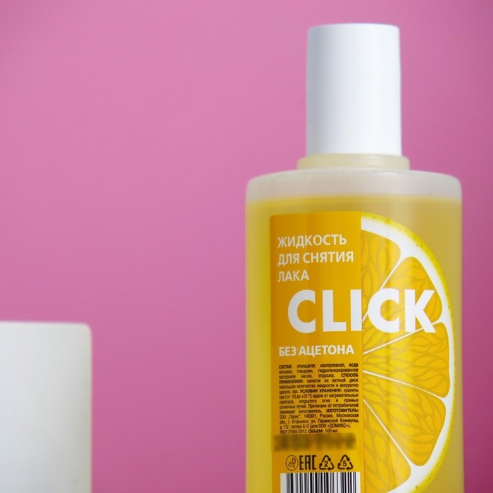 Жидкость для снятия лака CLICK без ацетона, "Лимон" , 100 мл
