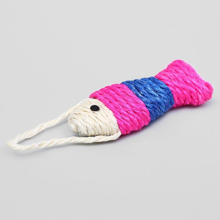 Игрушка-когтеточка сизалевая "Рыбка-полосатик", 11 см, белая/розовая/фиолетовая