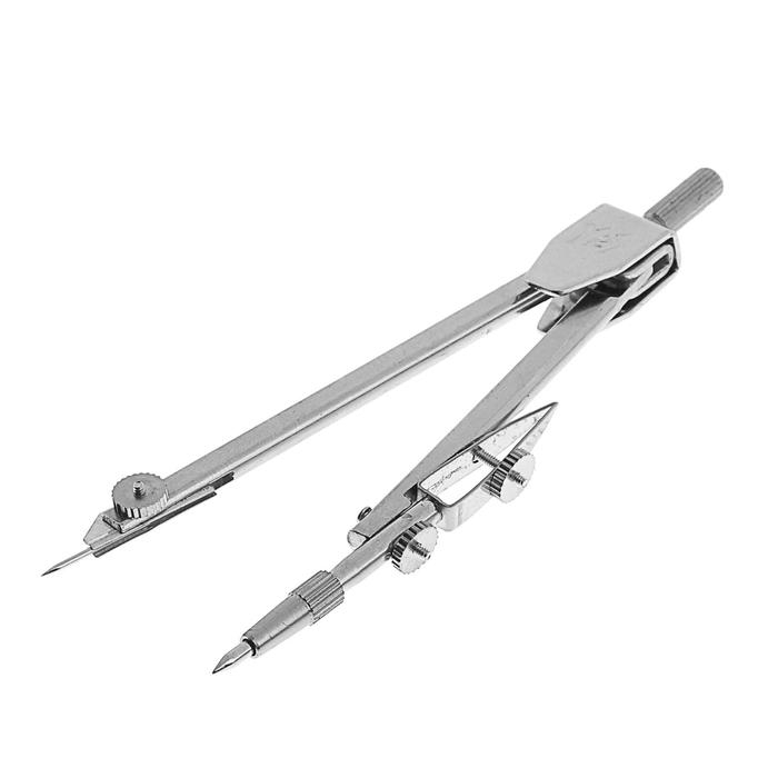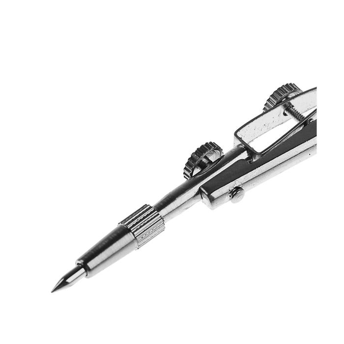 Циркуль металлический 115 мм, с чернографитным карандашом в пластиковом пенале, МИКС