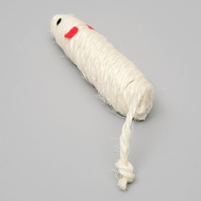 Игрушка сизалевая "Длинная мышь", 14,5 см, белая