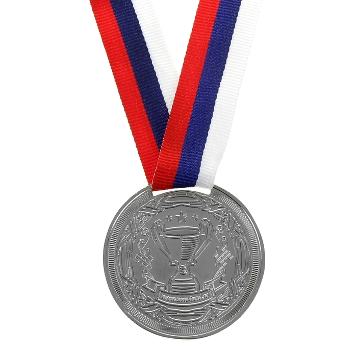 Медаль призовая 013, d= 5 см. 2 место, триколор. Цвет серебро. С лентой