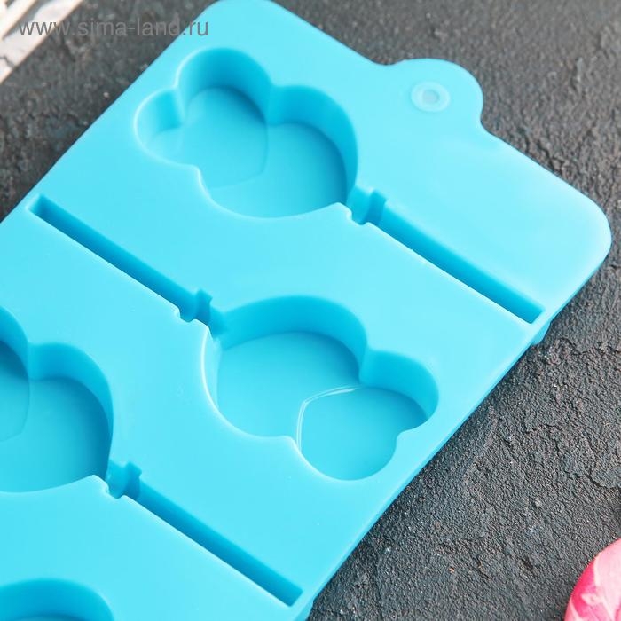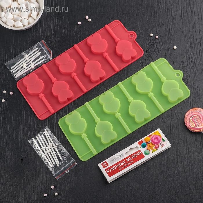 Форма для леденцов Доляна «Влюблённость», силикон, 9,5×24×1 см, 6 ячеек (4,2×3,3 см), с палочками, цвет МИКС