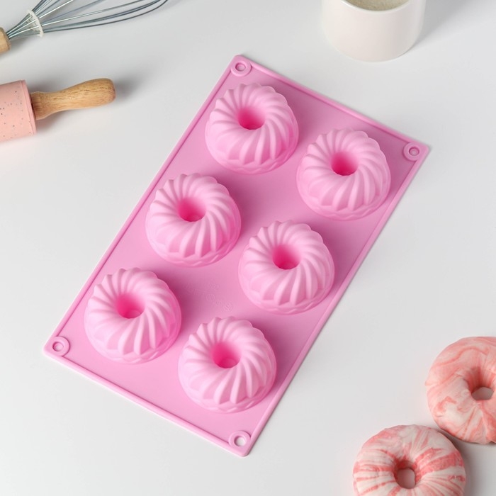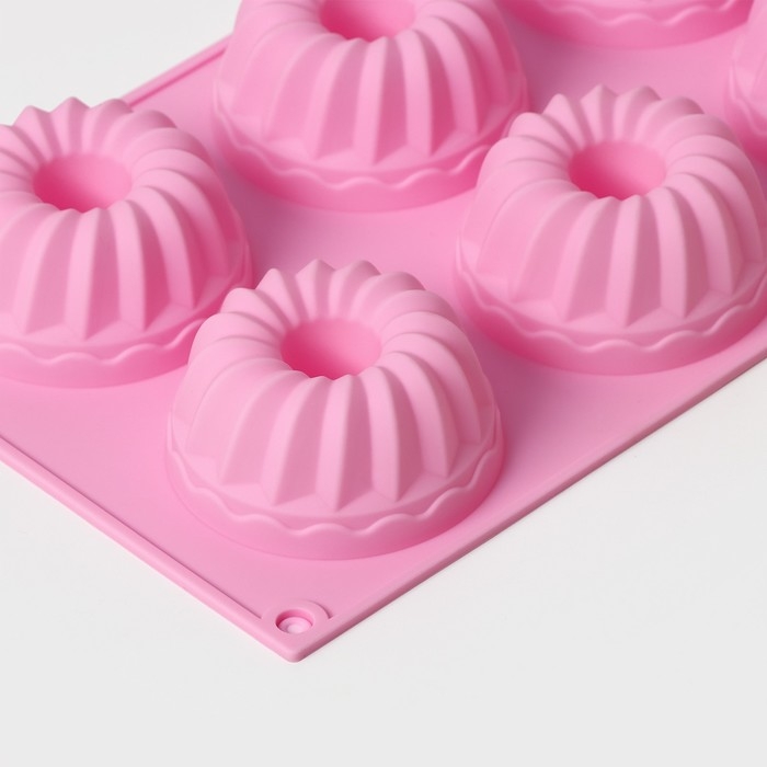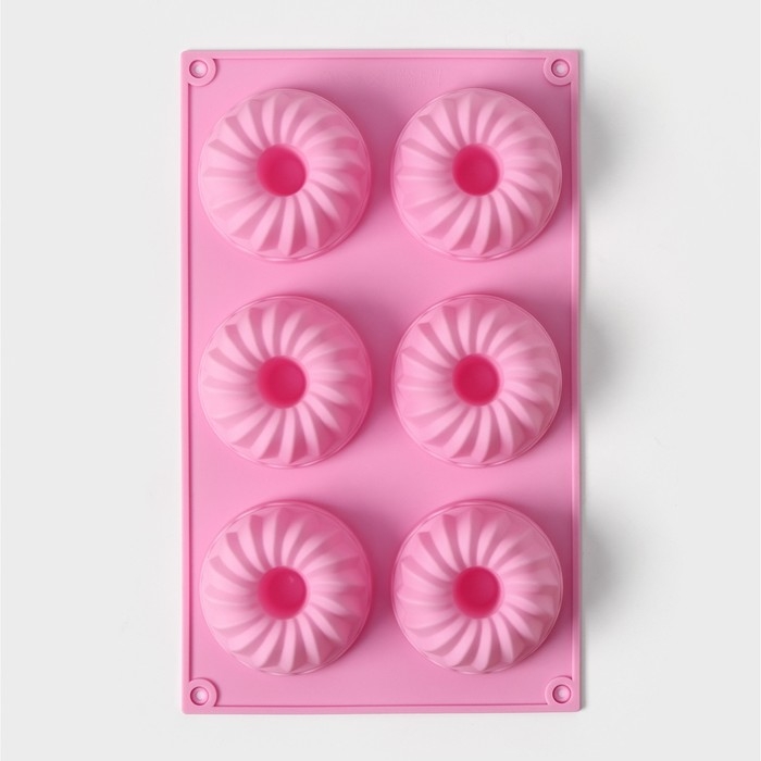 Форма для выпечки Доляна «Немецкий кекс», силикон, 17×27 см, 6 ячеек (d=7 см), цвет розовый