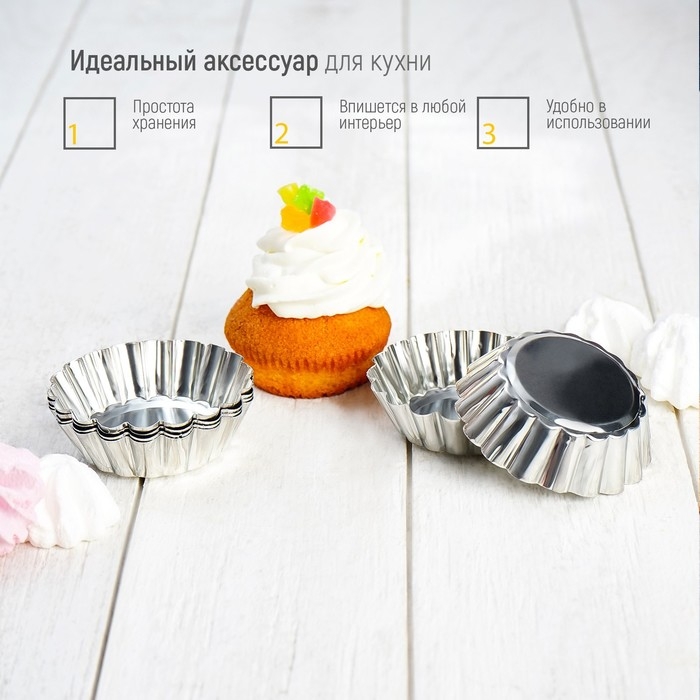 Набор форм для выпечки Доляна «Кекс», 6,5×1,8 см, 6 шт