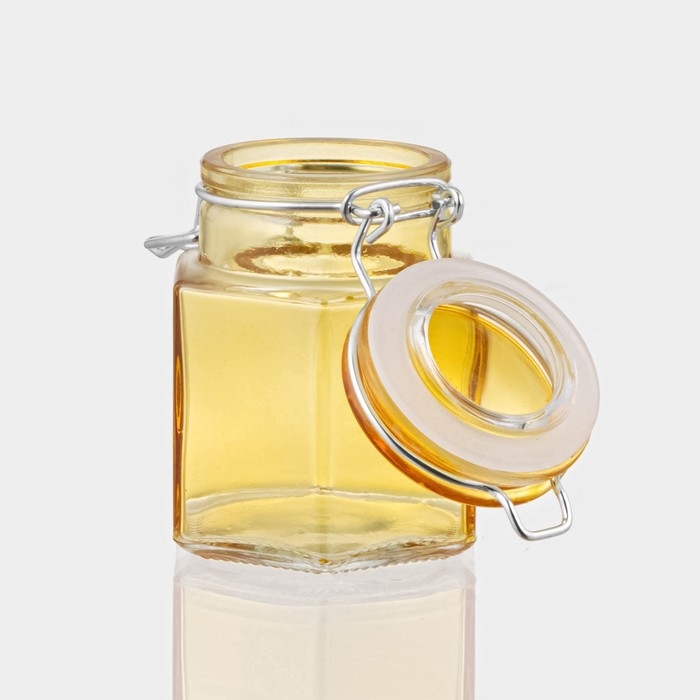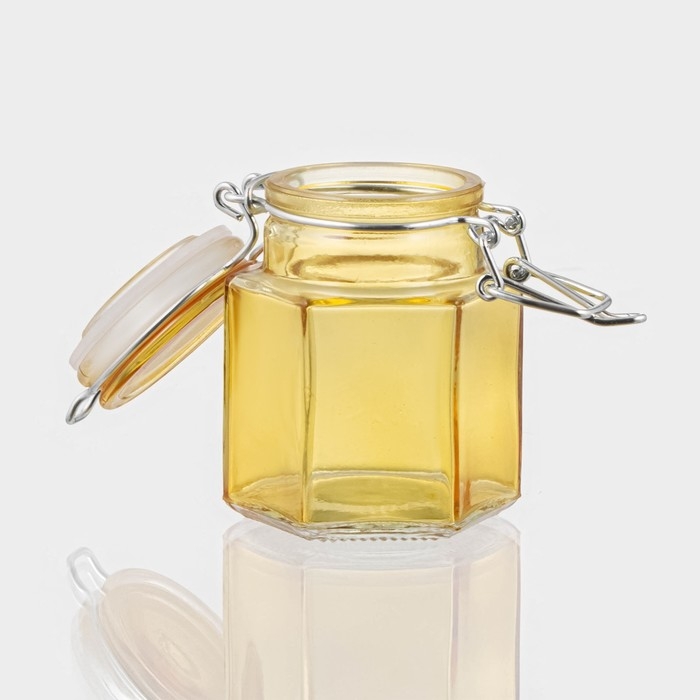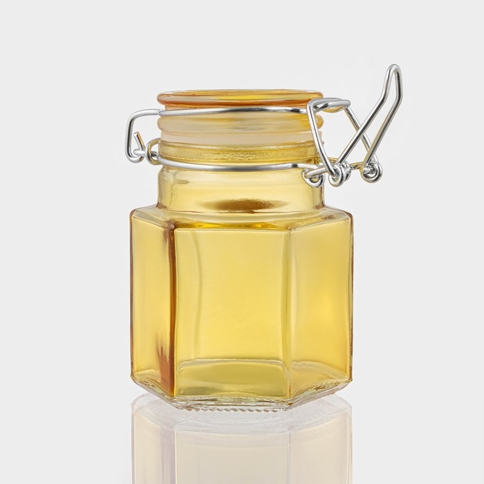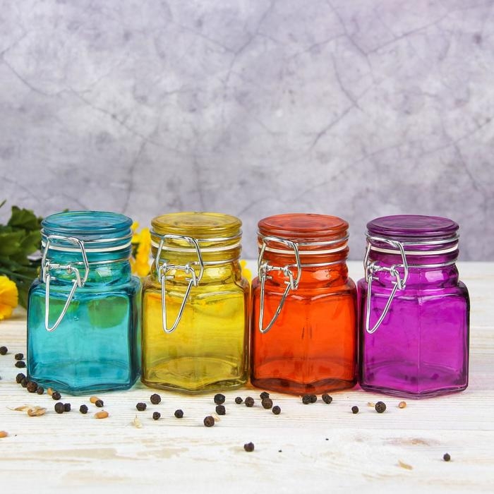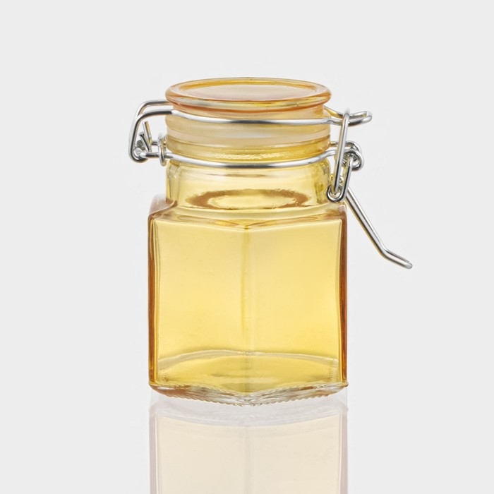 Банка стеклянная для хранения сыпучих продуктов «Грани», 100 мл, 5,5×8 см, с бугельным замком, цвет МИКС
