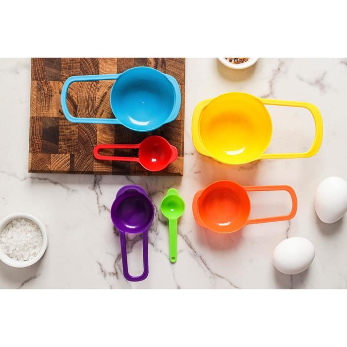 Набор мерных ложек для точного измерения количества продуктов. Предназначены для сыпучих или жидких ингредиентов, таких как специи, мука, вода, молоко, масло. А также для измерения спортивного питания и детских смесей. На каждом приборе есть удобная маркировка, с помощью которой легко определить точное количество необходимого продукта. Сделаны из пищевого пластика.