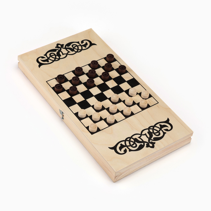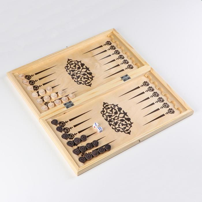 Нарды деревянные большие, настольная игра "Узор", 40 х 40 см, с полем для игры в шашки