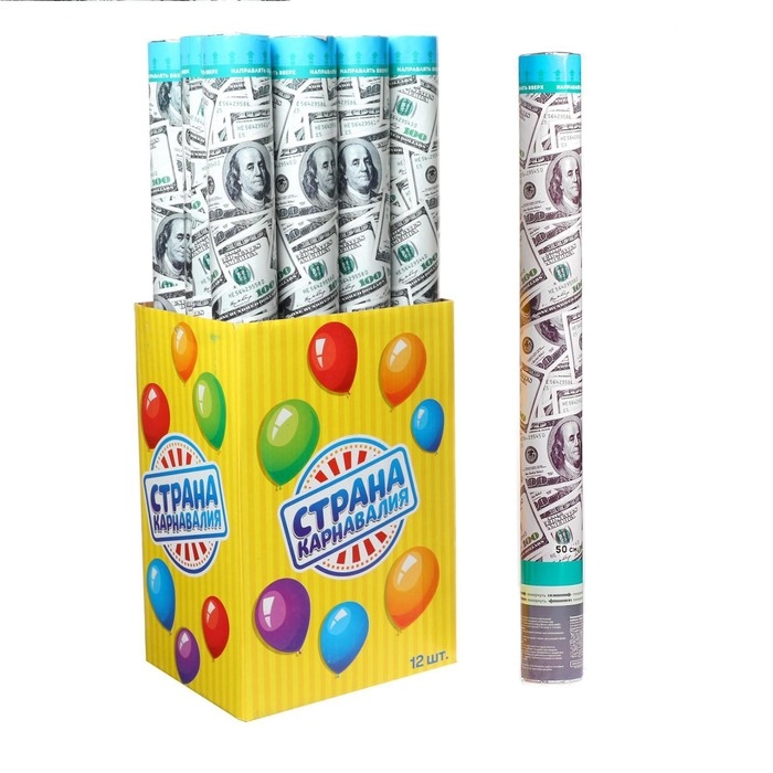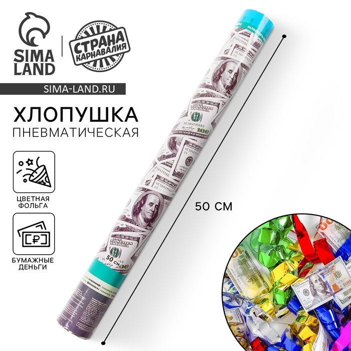 Пневмохлопушка «Доллар», серпантин, 50 см