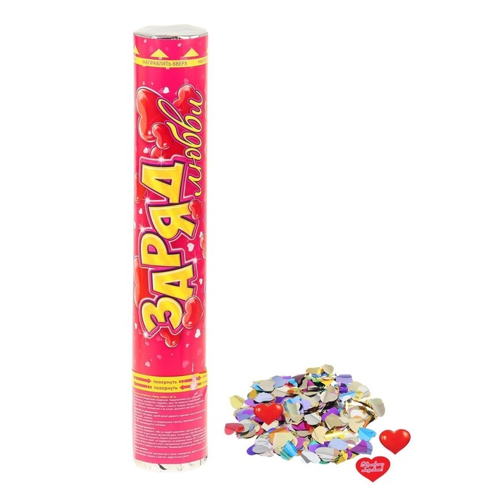 Пневмохлопушка «Заряд любви», фольга, сердце с пожеланиями, 30 см