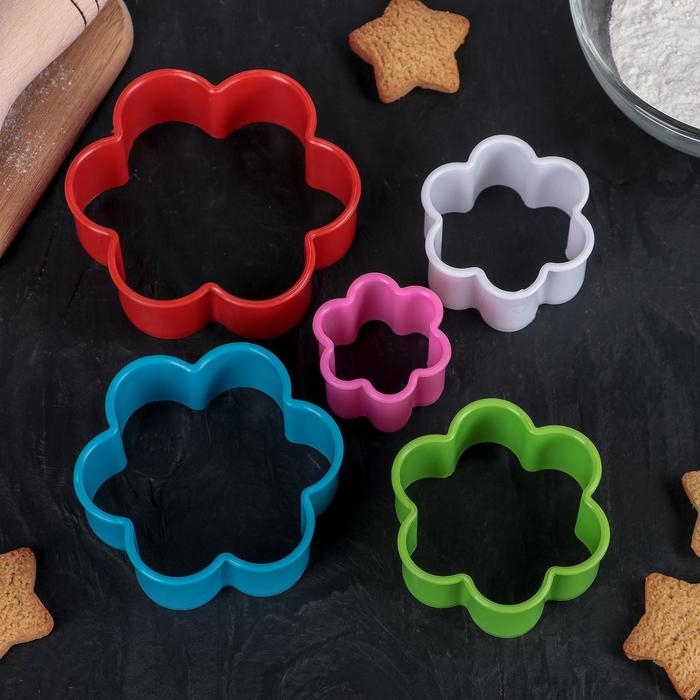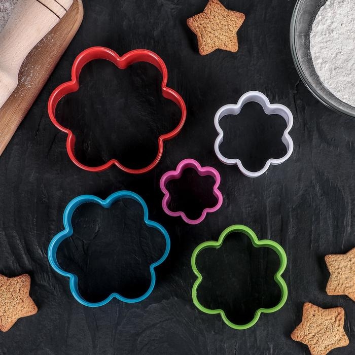 Набор форм для печенья Доляна, 5 шт: 9 см, 8 см, 6,7 см, 5,5 см, 4 см, цвет МИКС