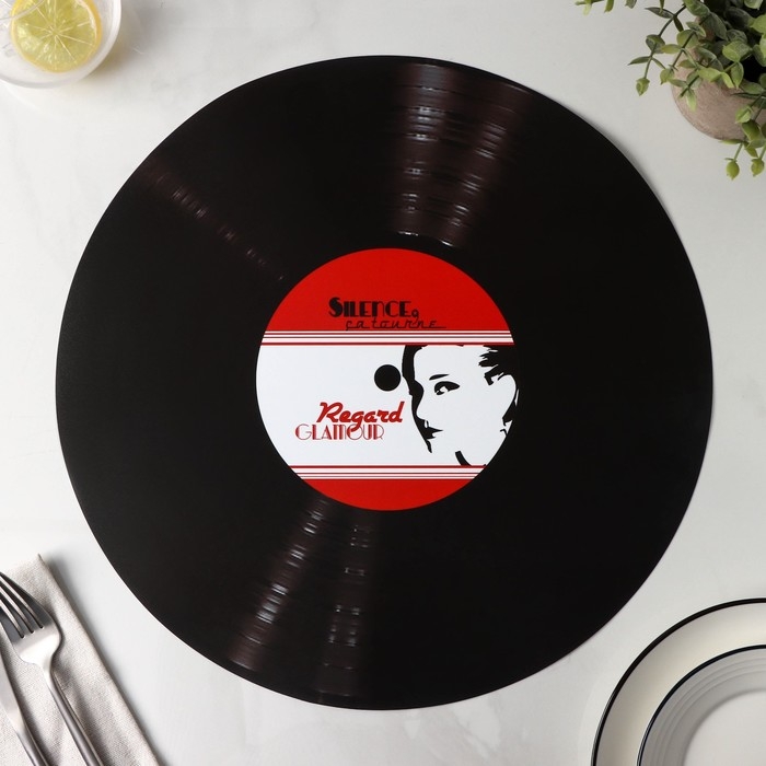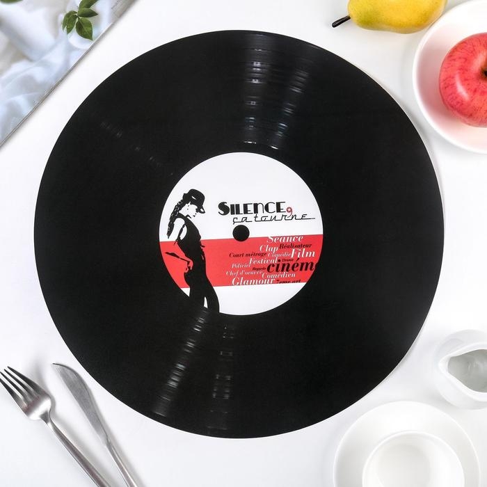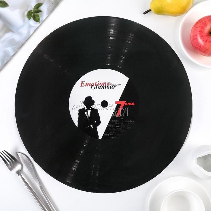 Салфетка сервировочная на стол Доляна «Виниловая пластинка», d=38 см, цвет чёрный