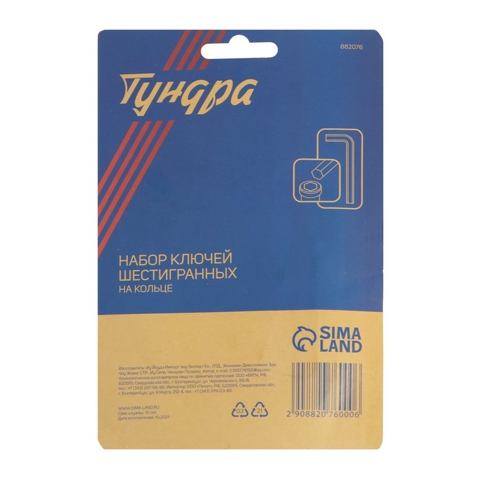 Набор ключей шестигранных на кольце ТУНДРА, 1.5 - 10 мм, 10 шт.