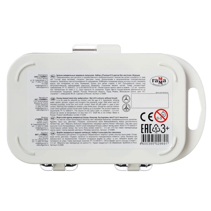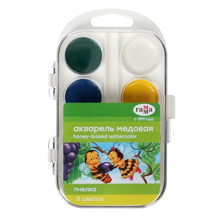 Акварель 8 цветов "Гамма" "Пчёлка", медовая, без кисти, пластик