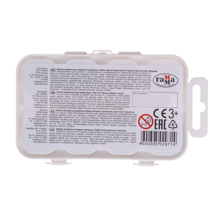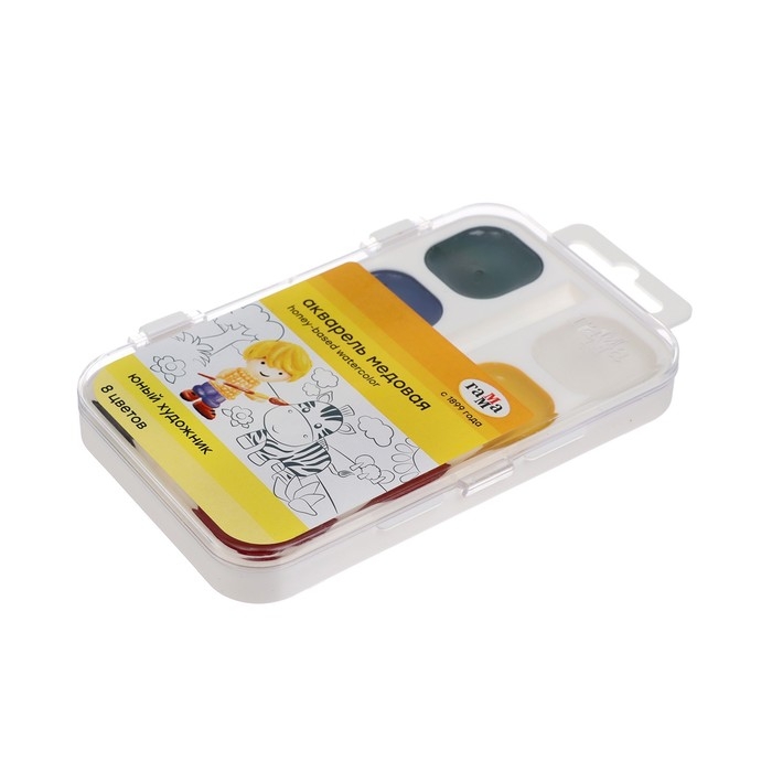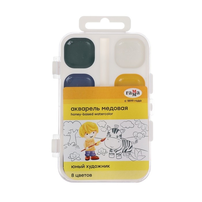 Акварель 8 цветов Гамма "Юный художник", медовая, без кисти, пластик 212069