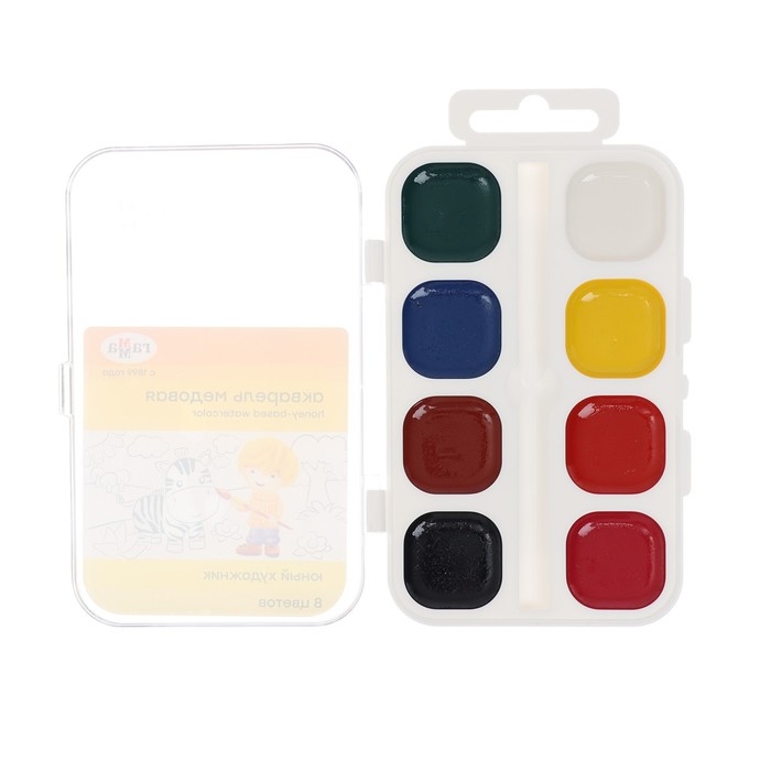 Акварельные краски медовые 12 цветов в пластиковой коробке, без кисти