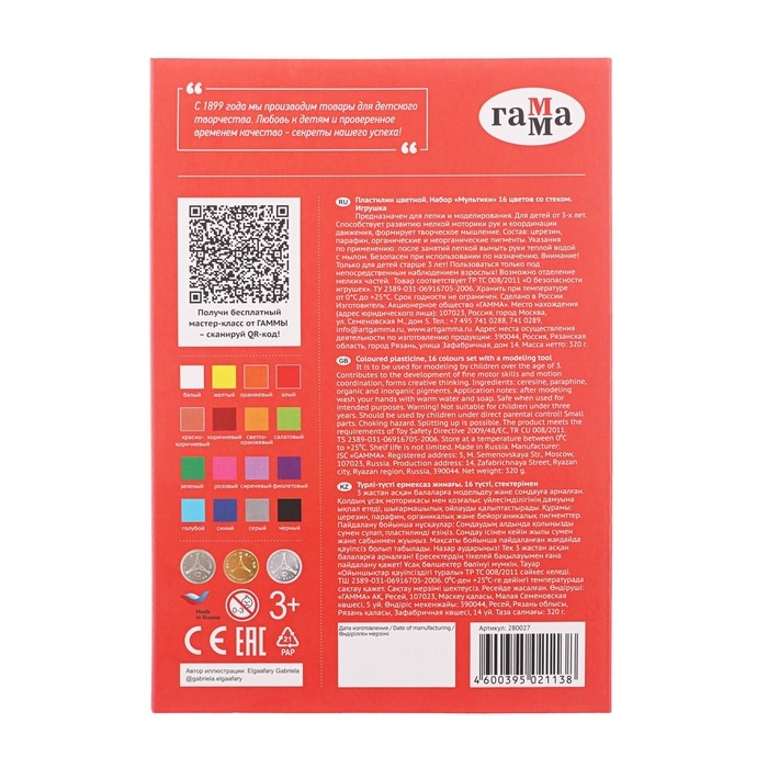 Пластилин серии "Мультики" разработан специально для детей от 6 до 9 лет с учетом рекомендаций педагогов.